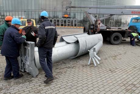 Rašėme, kad laikiną skulptūrą norėta pašalinti dar sekmadienį, bet ji buvo užbarikaduota automobiliais. Vakar prie Šiaulių arenos policijos pareigūnai aptvėrė teritoriją aplink „Penktąjį kėlinį“, darbininkai ėmėsi skulptūros demontavimo darbų.