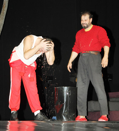 IŠTRAUKA: Premjerinio spektaklio „Meilė po guobomis“ ištraukoje du vyresniuosius sūnus vaidina aktoriai (iš kairės) Dalius Jančiauskas ir Rolandas Dovydaitis.