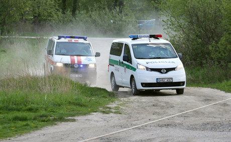 PALYDA: Greitosios automobiliu gabenamą donoro širdį iki stadione nutūpusio sraigtasparnio atlydėjo policijos pareigūnai.