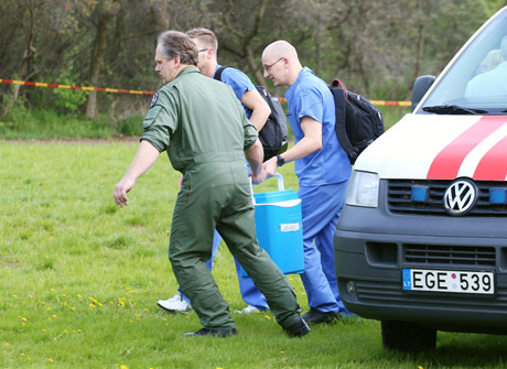 VILTIS: Į sraigtasparnį skubančių lakūno ir medikų rankose – viltis išgyventi širdies transplantacijos laukiančiam recipientui.