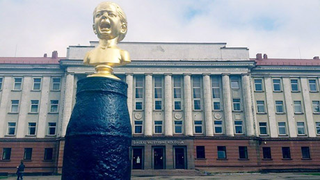 Statulos dydžio klausimas lieka ginčytinas, tačiau kaip reaguoti į užrašus? Ant akivaizdžiai skylėto mergaitės biustą laikančio vamzdžio puikuojasi užrašas: Liesti tik vamzdį! „Verksmas“.