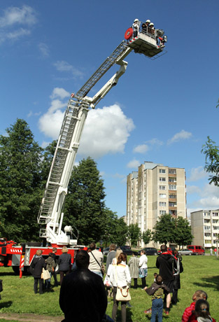 AUKŠTUMOS: Šiaulių apskrities priešgaisrinės gelbėjimo tarnybos technika visus norinčius kėlė į 42 metrų aukštį.