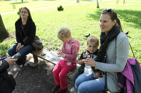 UŽSIĖMIMAS: Šiaulietė Lina Gimbutienė sakė, jog šiame parke jaučiasi saugi. Jei tik gali, į parką su vaikais Austėja ir Tautvydu ateina kasdien.