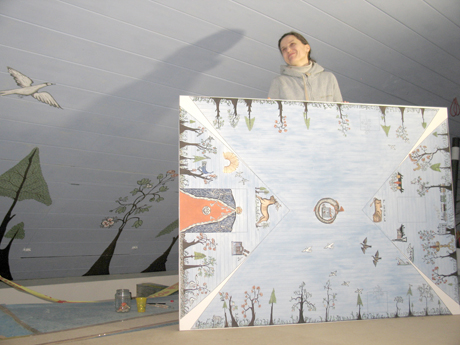 Restauratorės Indrės Valkiūnienės rankose – skliauto tapybos išklotinė.