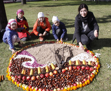 Švietimo įstaigų bendruomenės kūrė spalvingas mozaikas iš smėlio, akmenukų, gilių, medžių lapų, gėlių žiedų, vaisių, daržovių ir kitų gamtinių medžiagų.