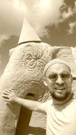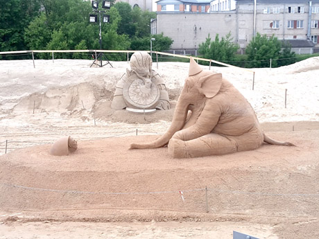 Šių­me­čio smė­lio skulp­tū­rų fes­ti­va­lio te­ma – teat­ras – M. Gau­bui la­biau­siai aso­ci­ja­vo­si su dramb­liu. „No­rė­jo­si su­kur­ti tai, kas iš­si­skir­tų iš ki­tų fes­ti­va­lio da­ly­vių kū­ri­nių, – pa­sa­ko­jo me­ni­nin­kas. – Dramb­lys juk ir­gi ak­to­rius, nors ir vai­di­na ne teat­re, o cir­ke. Lat­vi­jo­je ne­se­niai bu­vo už­draus­ti lau­ki­nių gy­vū­nų pa­si­ro­dy­mai, to­dėl į pen­si­ją te­ko išei­ti ir vi­są gy­ve­ni­mą vai­di­nu­siems dramb­liams. Gal to­kius pa­si­ro­dy­mus drau­džian­tis įsta­ty­mas yra ge­ras, nes gi­na gy­vū­nus bei jų tei­ses, ta­čiau ma­no dramb­lys dėl pa­si­bai­gu­sios il­ga­me­tės ak­to­riaus kar­je­ros kiek nu­liū­dęs“.