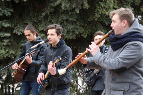 Žemės dienos renginio dalyviams koncertavo Šiaulių moksleivių namų muzikos studijos „En-den-du“ instrumentinė grupė „Kalnų ereliai“.