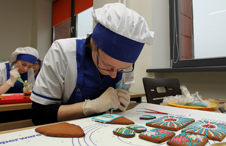 Jau beveik savaitę konditerijos mokytojai ir mokiniai kepa, dekoruoja bei stato kone 20 centimetrų aukščio imbierinių meduolių namelius. Keliolika jų jau stovi. Visi skirtingi – skrupulingai išmarginti įvairiaspalvių glajų raštais, puošti cukraus ir marcipano mase, pabarstukais.