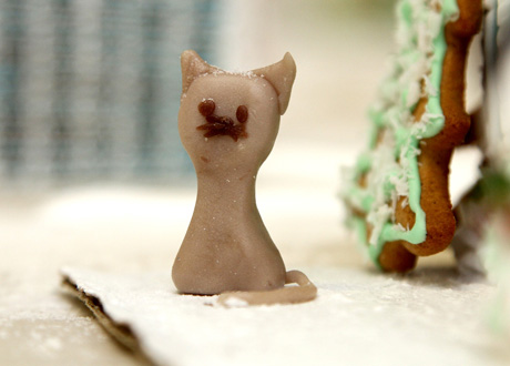 Šalia namelių – eglės, sniego seniai. Netrukus jie užpildys visą miestelį. Čia turėtų atsirasti ir namelius supančios tvoros – meduolinės, iš baltymų kremo kurtų snaigių ar eglių. Išdygs ir šokoladiniai medžiai, dvylika meduolinių elnių su rogėmis, vežančiomis Kalėdų Senelį ir dovanas. Viskas paskęs kremo pusnyse ir pūgoje.