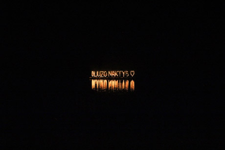 TRADICIJA: Tradicinis „Bliuzo naktų“ užrašas naktį uždegamas viduryje ežero.