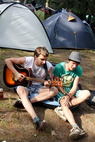 „Man tai – kaip antros Kalėdos. Laukiu festivalio visus metus“, – patikina Paulius iš Šiaulių. Vaikinas su draugais atsivežė gitarą. „Jei gerai grosit, gal net prie scenos nebereikės eiti“, – replikavo palapinių kaimynai.