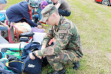 TVARKA: Atvykus į stovyklą vyresni jaunieji šauliai tikrina stovyklautojų daiktus. Neleistini daiktai – cigaretės, alkoholiniai gėrimai. Jų nerasta.