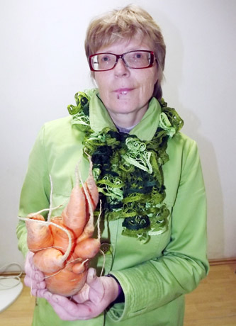 Kuršėniškė Aurelija Petrikienė savo darže rado į vieną suaugusią morkų šeimynėlę.