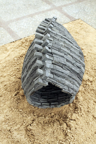 AKMUO: Prie vieno iš naujausių savo abstrakčių darbų „Sunertas“ J. Vaitkevičius dirbo ilgai. Užtruko ir medžiagos rinkimas, ir akmens gabaliukų derinimas bei klijavimas.