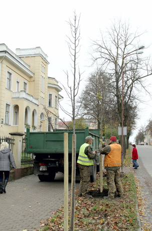 SODINIMAS: UAB „Šiaulių apželdinimas“ darbininkai vakar liepas sodino Vytauto gatvėje.