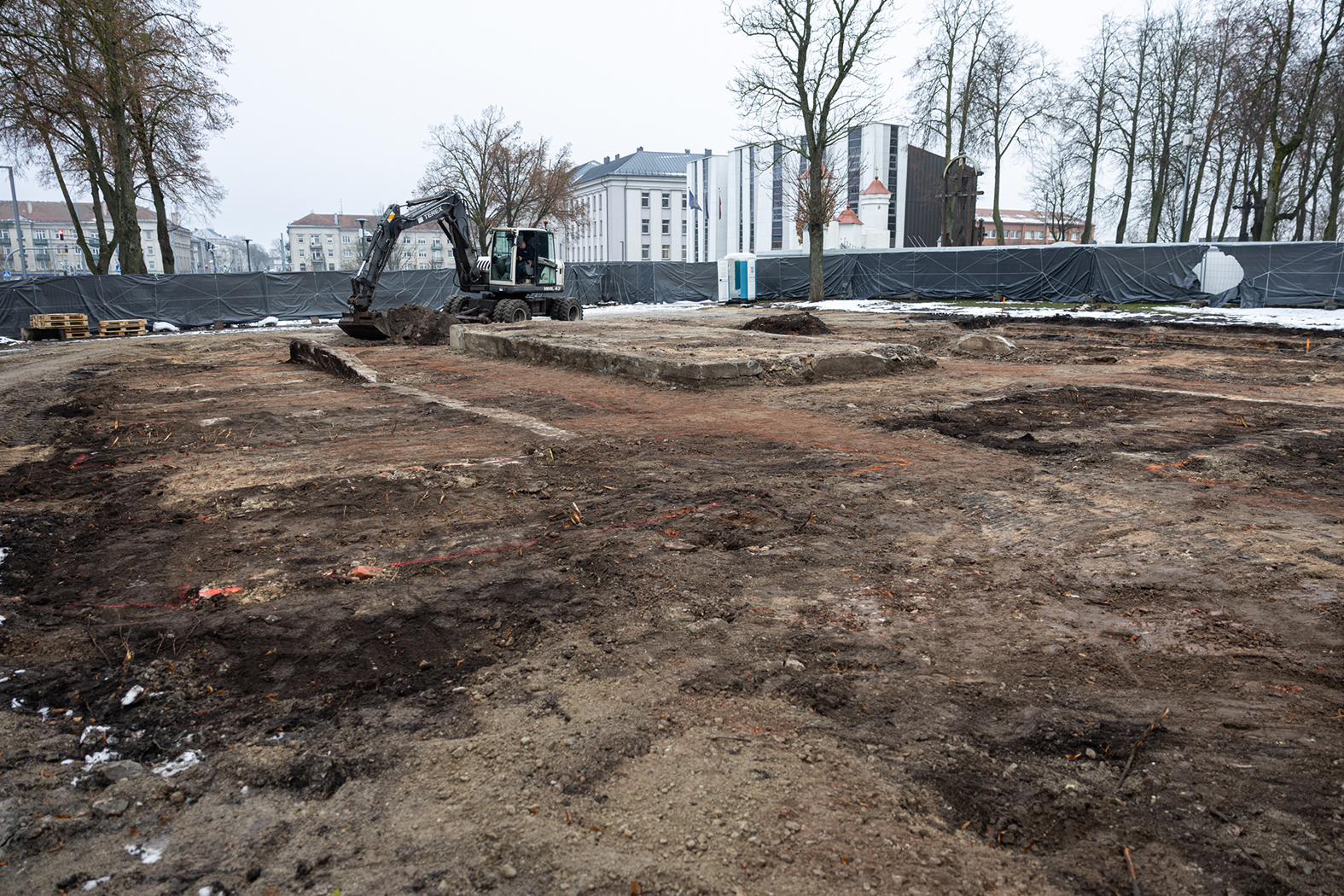 Centrinėje miesto dalyje suformuota palaidojimo vieta ne kartą buvo pertvarkyta, situacija, palyginti su pirmine, yra stipriai pasikeitusi. Dabartiniai darbai, pasak archeologo, yra pašalinti viršutines dangas, struktūras ir prieiti prie pirminio paviršiaus, koks buvo laidojimo metu.