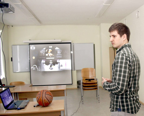 KŪRĖJAS: Šiaulių universiteto informatikos absolventas Robertas Štitilis baigiamajame darbe dėstytojus nustebino išskirtiniu profesionalumu sukūręs „Kinect“ įrenginiu valdomą žaidimą „Krepšinis kitaip“.
