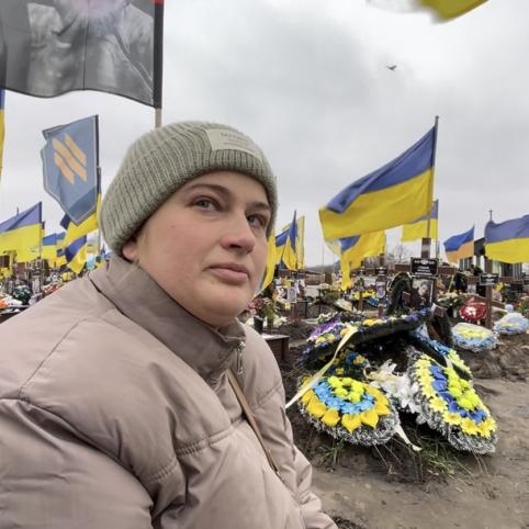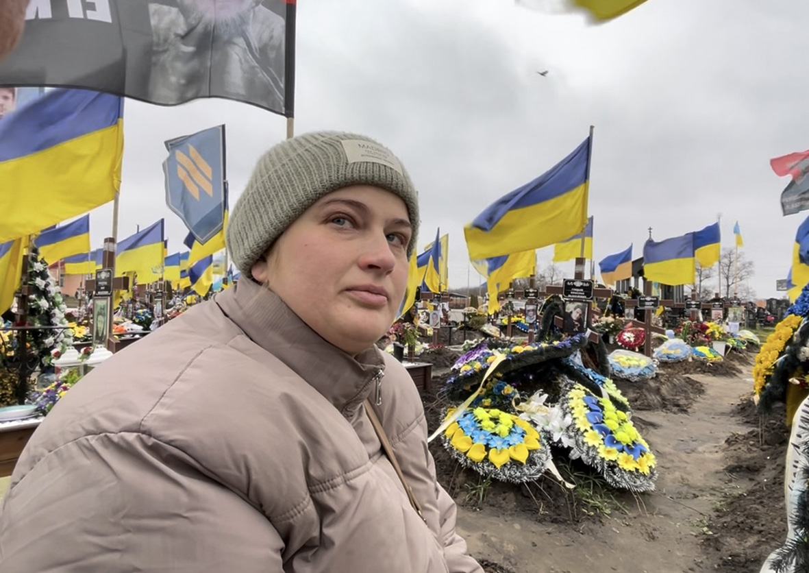 Charkivo kapinių Didvyrių alėjoje sutikau Mariną Poligalovą. Moteris buvo atnešusi padėti žvakutę bei gėlių ant vyro Grigorijaus kapo.