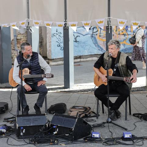 Toliau šventiniai renginiai persikėlė į Šiaulių bulvaro amfiteatrą. Čia susirinkusiems žmonėms dainuojamosios poezijos kūrinius atliko aktorių duetas Olegas Ditkovskis ir Saulius Bareikis.