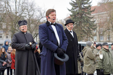 Vasario 16-osios Nepriklausomybės Akto signatarus įkūnijo Valstybinio Šiaulių dramos teatro aktoriai.