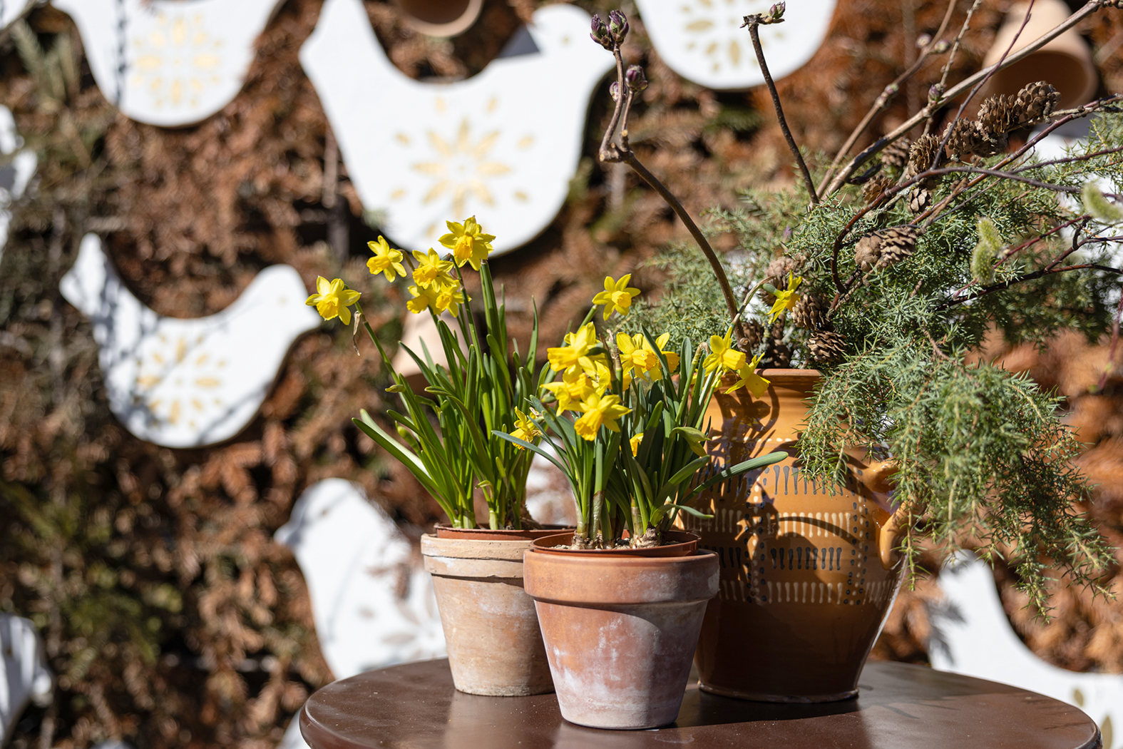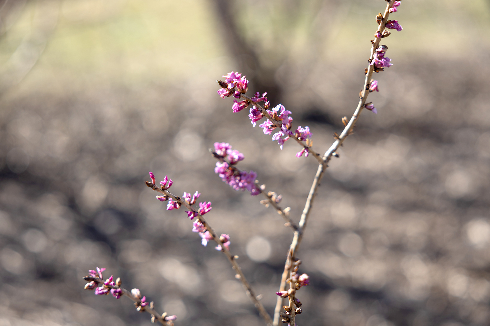Po žirginėliais mojančiu paprastuoju lazdynu pabirusios scylės. Ryškiais žiedais apie pavasarį praneša forsitijų krūmai. Žydi ir paprastasis žalčialunkis – labai gražus ir be galo nuodingas. Apie jo grėsmes Botanikos sode įspėja lentelė su kaukole.