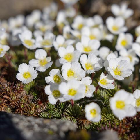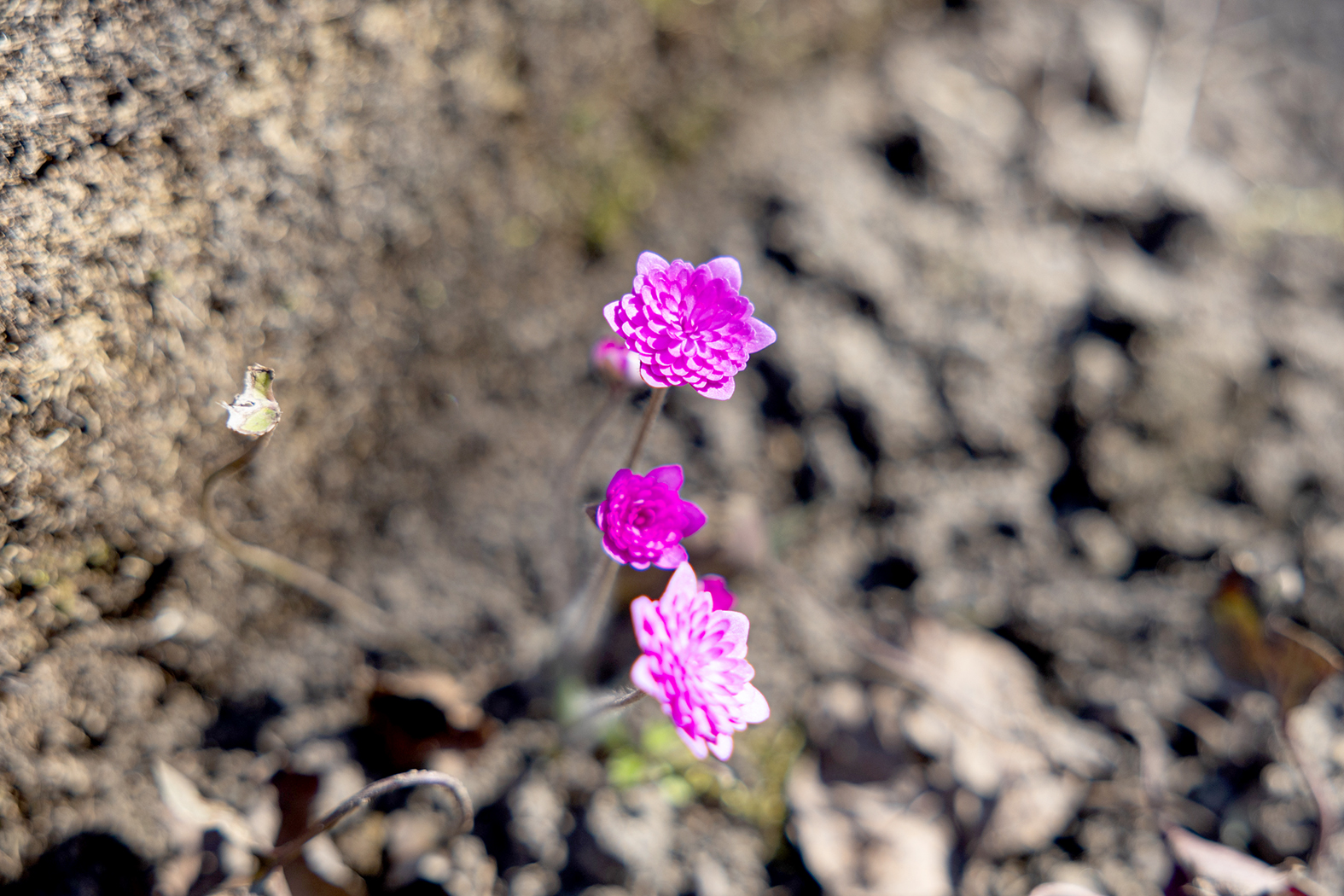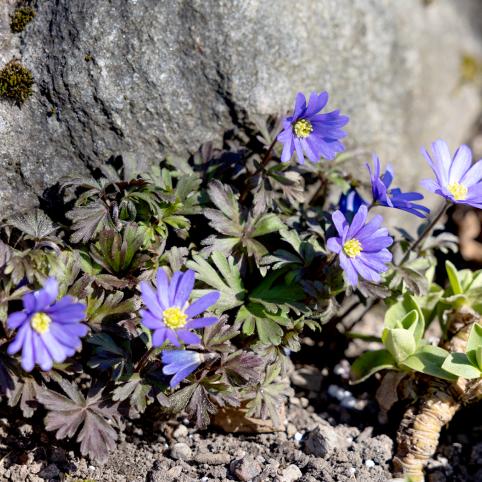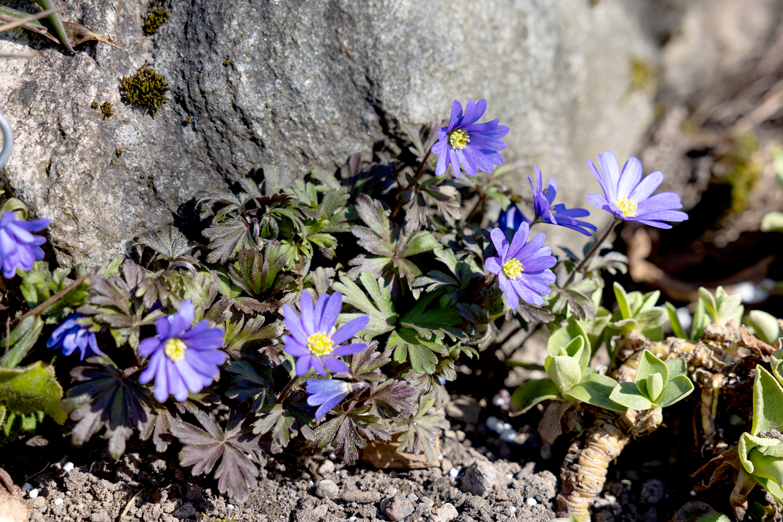 Žydėti pradėjo ir uolaskėlė – kalnų augalas. O erantis jau ir nužydėjęs.