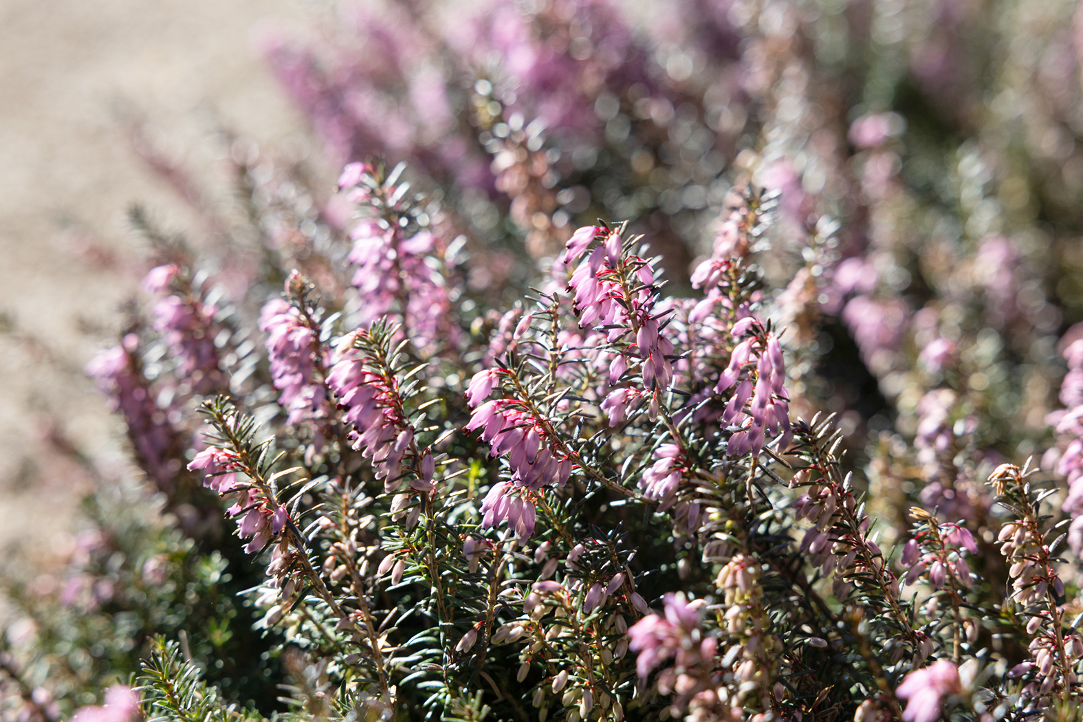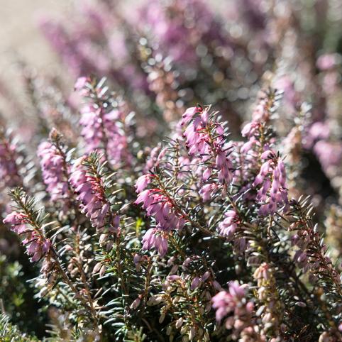 „Dar vienas grožis – pavasarinė erika. Daugiametis, visžalis augalas. Dėl gausaus sniego kiek išgulė ir šiek tiek parudo, pernai buvo vientisai rožinis“, – žiedų kilimėliu pasidžiaugia R. Lengvenytė-Vitkauskienė. Botanikos sodo parke auga ir baltųjų erikų.