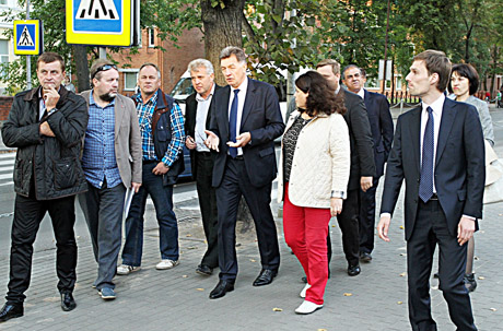 „BITĖ": Premjeras Algirdas Butkevičius – pakeliui į šventinį renginį, kuriame buvo pavadintas „pagrindine bite“. Pirmas iš dešinės – vicemeras Domas Griškevičius.