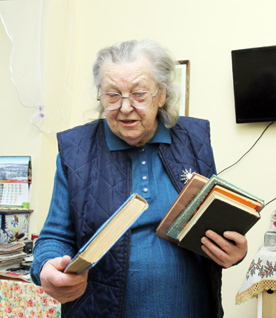 KNYGOS: Devyniasdešimtmetė Bronė Juozaitienė myli knygas – neseniai iš blusų turgaus parsigabeno dvylika romanų.