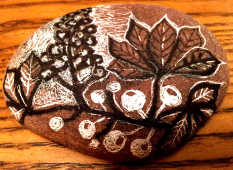 „Juk tai tik smulkmenos“, – sako Kuršėnuose gyvenanti mokytoja ir tautodailininkė Alma Jaugelytė-Stugienė, pakalbinta apie naujausią savo kūrybos kryptį – akmenukų marginimą. Nevadina to tapyba ar piešimu ant akmens – tai tik marginimas. Ornamentas, grafikos detalė, gamtos fragmentas, keli simboliai, medžio lapas, gyvenimo medis, linijų žaismas...