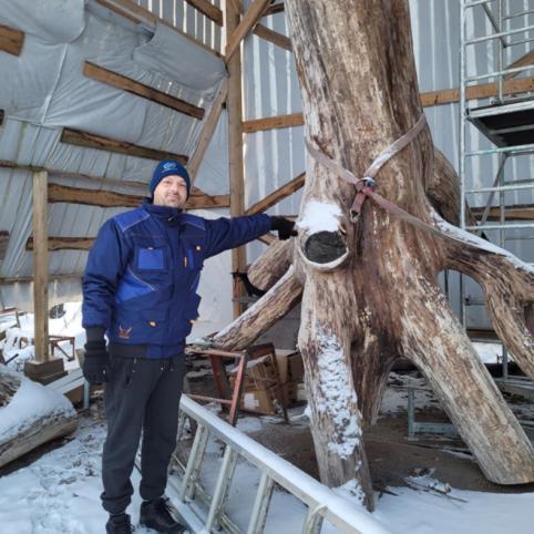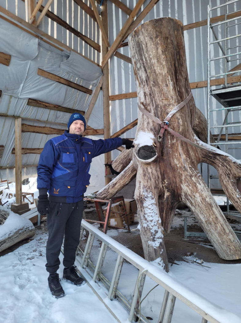„Bendravome su Adomu Žudžiu. Nuvažiuoju į Naisius, kur jis gavo ąžuolo kelmą, bet reikėjo pačiam išsikasti. Matau, kad su kastuvėliu bando šaknis rausti. Tai prisijungiau su ekskavatoriumi ir tada jas sėkmingai iškasėme, iškėlėme, paskui sugalvojau, kaip tuo ekskavatoriumi pargabenti kelmą su šaknimis į dirbtuves“, – smagiai įvykį prisimena pašnekovas.