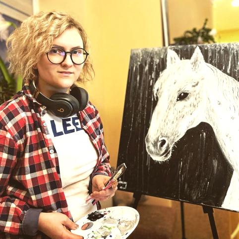 Šiame garbingą istoriją turinčiame miestelyje Simona realizuoja savo meninius sugebėjimus: tapo paveisklus, veda tapybos ant puodelių edukacines programas, dalyvauja meno saviveikloje, išmoko groti kontrabosu.
