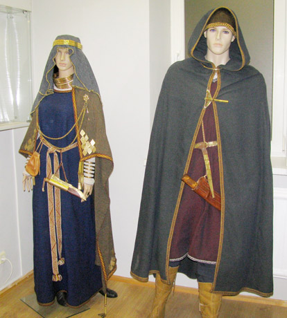 Archeologės Daivos Steponavičienės rekonstruoti žiemgališki vyro ir moters rūbai.