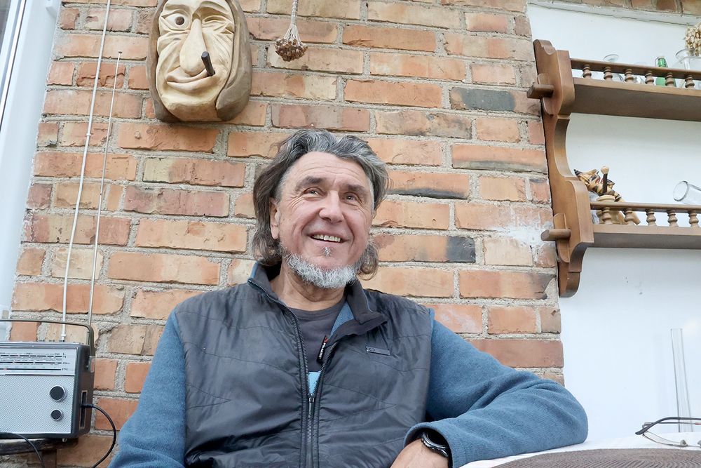 Apsilankiau pas Alvidą neeilinę dieną: vakare turėjo rinktis jo draugai, dukters šeima pasveikinti skulptorių, tapus Lietuvos dailininkų sąjungos nariu. Narystė Dailininkų sąjungoje gera proga šnektelti apie visą kūrybinį kelią. Ta proga, dar pasižvalgę dirbtuvėje, grįžome į namo verandą, kurioje malonu pasėdėti saulėtą rudens dieną.