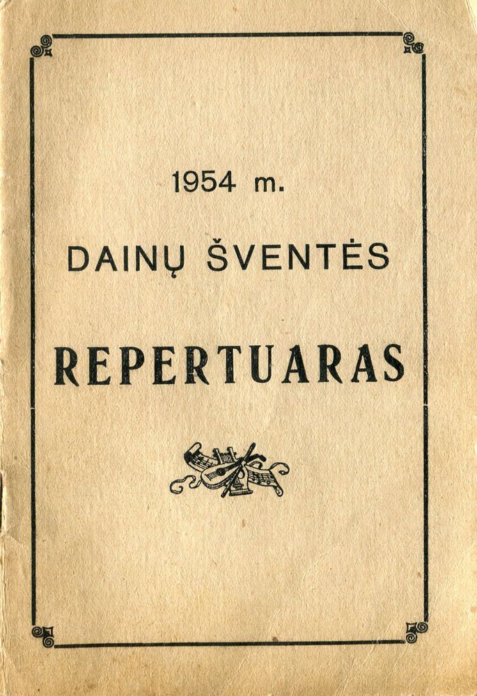 Radau knygelytę „1954 m. Dainų šventės repertuaras“. Išspausdinta Šiaulių „Titnago“ spaustuvėje, 2000 egzempliorių tiražu. Manau, tiražas buvo išdalytas Dainų šventėje dalyvavusių chorų dainininkams.