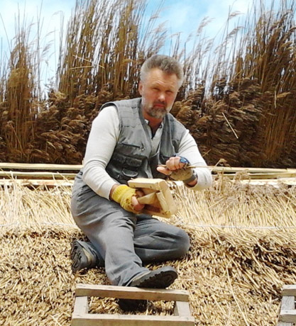 STOGDENGYSTĖ: Virginijus Mileška atgaivino senąjį lietuvišką amatą stogus dengti nendrėmis.
