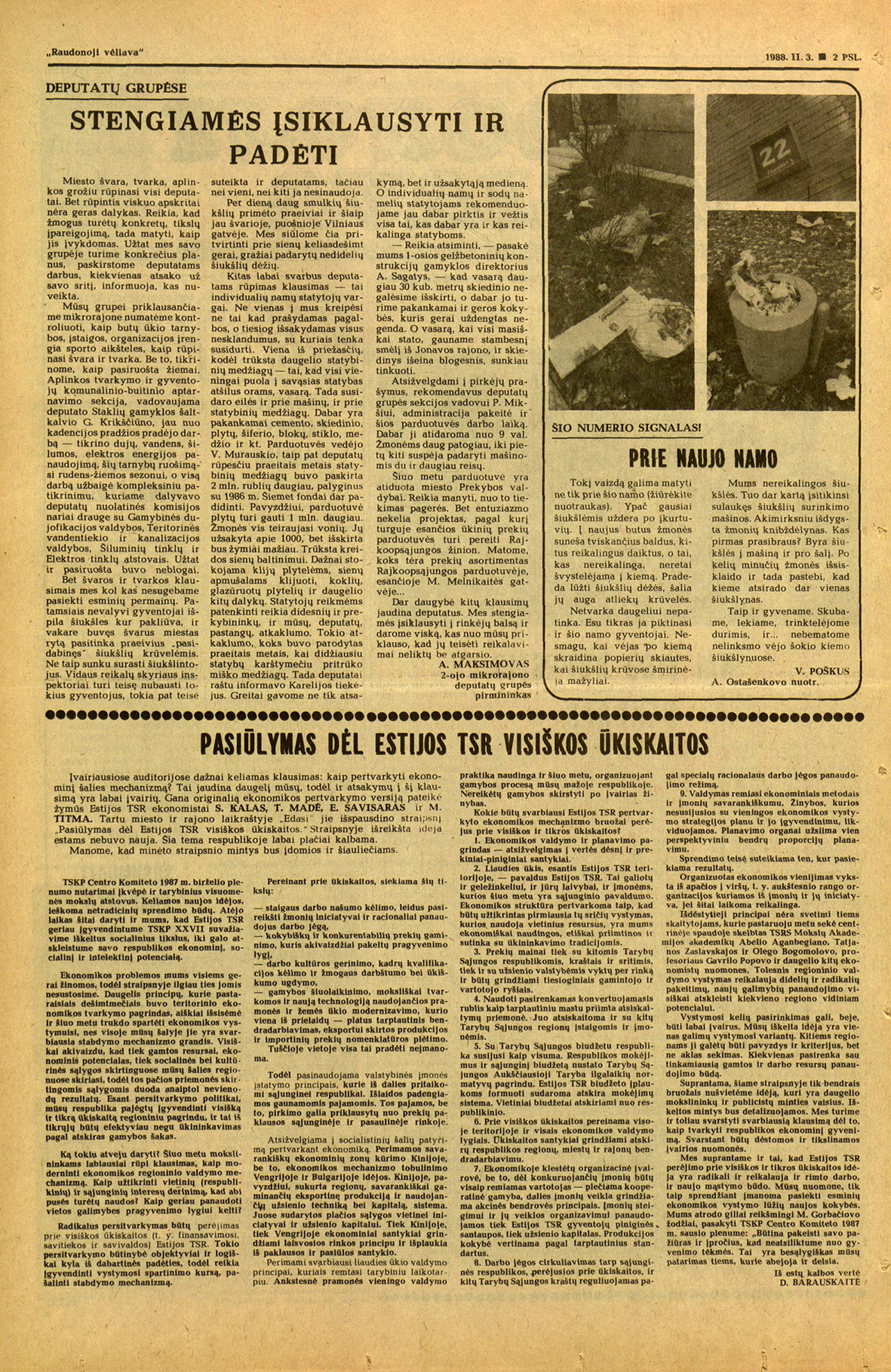 Kalbama apie 1988 metų pradžią. „Vasario 3 d. Šiaulių „Raudonoji vėliava“ paskelbė verstą iš estų spaudos stebėtinos drąsos projektą – „Pasiūlymą dėl Estijos TSR visiškos ūkiskaitos“.