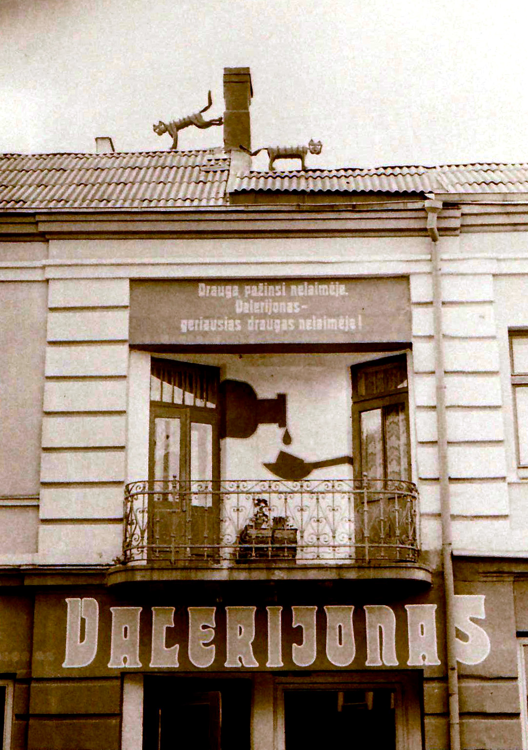 – Praeitoje pokalbio dalyje šiek tiek palietėme Šiaulių „Valerijoną“ – katinukus ant vaistinės stogo. „Valerijono“ katinai – man mieliausias miesto akcentas – vis pakeliu galvą: jų daugiau ar mažiau, bet labai miela. Kaip Jūs ten juos užkėlėte?