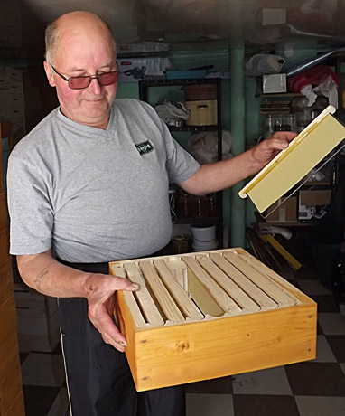 Tokių dėžučių iš spygliuočių medienos šeima pagamino apie tūkstantį. Vyras kalė dėžutes, žmona Dalė klijavo rėmelius, ant kurių bitės toliau „siuva“ korį ir neša medų.