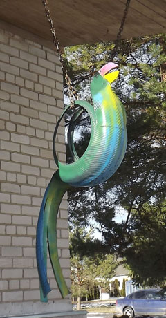 Žmona Žydrutė irgi turi įvairių idėjų, pavyzdžiui, iš padangos sukūrė papūgą.
