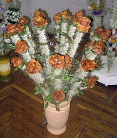 ROŽĖS: Ponia Audronė riša ne tik verbas. Šios, iš rudeninių lapų sukurtos rožės, atrodo kaip tikros.
