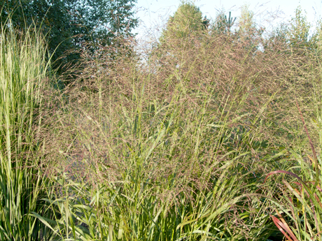 Pati stambiausia iš gėlininkų pamėgtų sorų – ‘Cloud Nine’ – monumentalus 2,0–2,4 m ūgio keras pilkšvais lapais. Didžiulės purios gelsvos, šiek tiek ruduojančios šluotelės. Gana stambi ir labai panaši ‘Strictum’ (keras 1,5–2,0 m, pilkai žali lapai svyrančiais galais), kuri vertinama dėl labai stabilaus ir taisyklingos formos kupsto. ‘Heavy Metal’ (1,5 m) lapai statūs, melsvi, šluotelės rausvos. Keras išsiskiria savo tvirtumu. ‘Prairie Sky’ (1,5 m) dar mėlynesnė. Kupstas puresnis nei kitų veislių, todėl stiprios vasaros liūtys gali jį šiek tiek aplamdyti, ypač jei augalą dar ir pernelyg pamylėsite trąšomis. Nepaisant šios mažytės blogybės, veislė labai dekoratyvi. Rudeniop skleidžiasi elegantiškos pilkšvos žiedynų šluotelės.