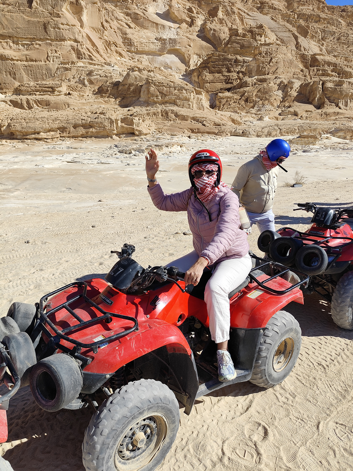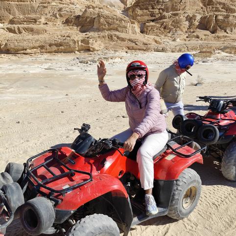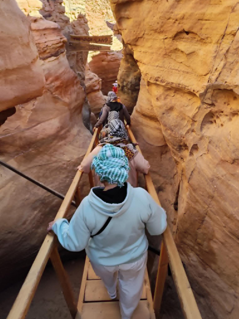 Nusprendžiame aplankyti didžiąją dalį Sinajaus pusiasalio – nuo Dahabo iki Tabos, pakeliui važinėjant keturračiais, jodinėjant kupranugariais, džipais nuvykstant prie ochros, rausvų ir kitų spalvų uolų ir akmenimis turtingo Egipto Raudonojo kanjono, dažniau vadinamo Salama spalvotuoju kanjonu, bei nusileidžiant į šio prasiskyrusio kalno apačią.