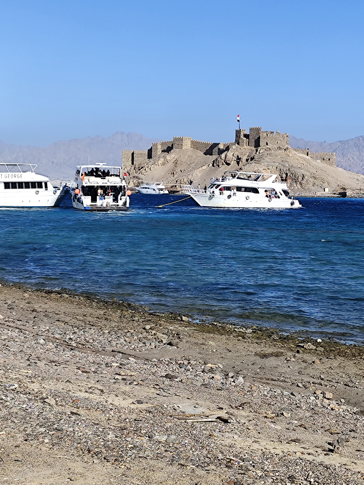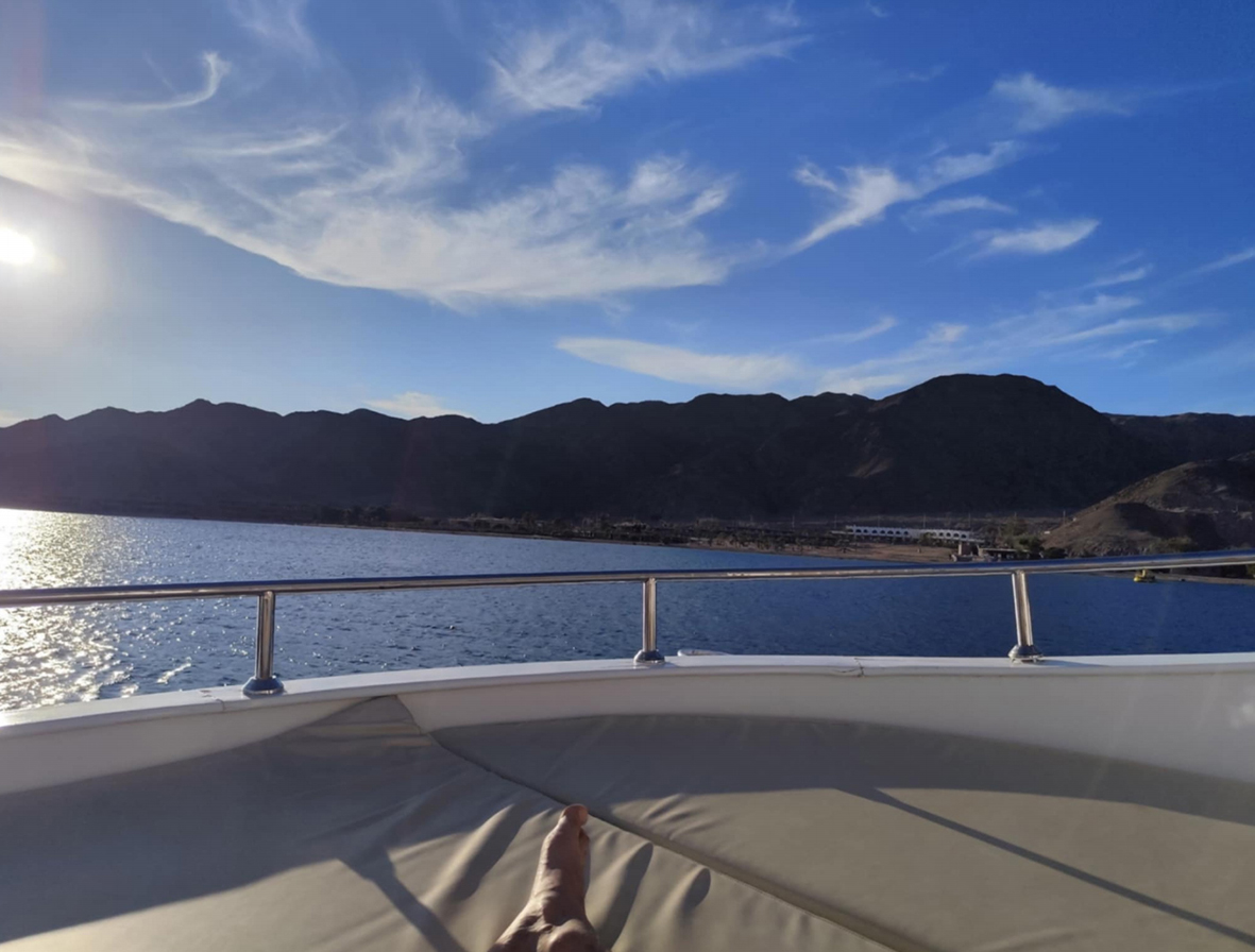 Sočiai papietavę mums rezervuotame laivelyje, plaukiame Akabos įlanka (Raudonosios jūros įlanka) arčiau Jordanijos krantų. Prasideda laikas, skirtas giluminiam ir paviršiniam nardymui – tokio gražumo koralų rifų, kokie yra čia, nedaug kur pamatysi. Vaizdų galią sustiprina ant vandens pastatyta Saladino pilis.