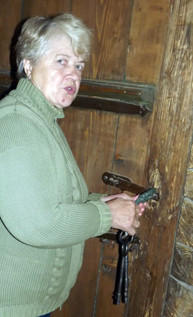 RAKTAI: Onutė Meškauskienė koplyčios durims atrakinti atsineša masyvius raktus.