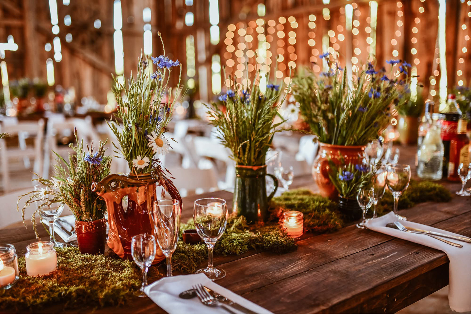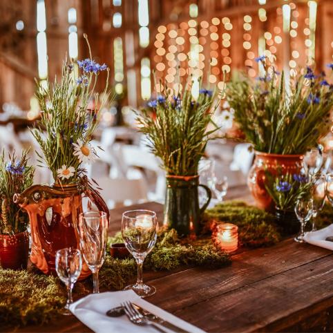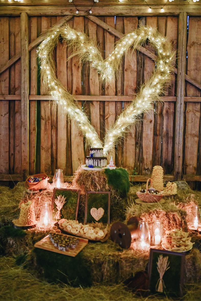Daržinei, virtusiai originalia pokylių sale tiko ir šiaudų ritiniai, ir kitokie žemdirbiški akcentai. Tik indai, kuriuos parūpino maistą tiekusi įmonė, buvo standartiniai, pagal šiuolaikinę madą.