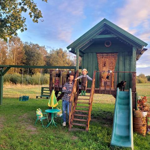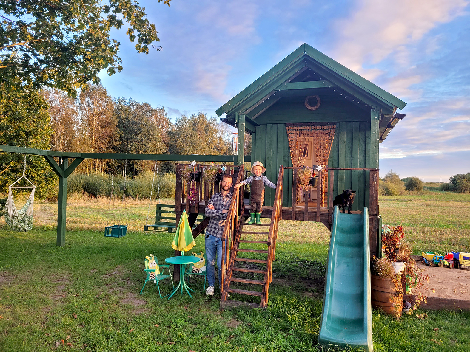 Iš tų lentų, kurias suklojo ant grindų daržinėje, kai vyko judviejų vestuvės, Mantas pastatė namelį su čiuožykla ir laipyne sūnui Ąžuolui. Simboliška. Namelis primena tas keistąsias vestuves, sukūrusias tvirtą Vaivos ir Manto ryšį, iš kurio gimsta vaikai. Vaiva ir Mantas norėtų turėti gausią šeimą. „Plečiasi ūkis. Reikės daug darbininkų“, – juokauja Mantas.
