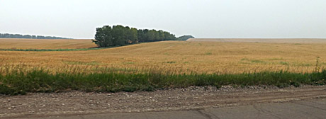 Kratantis per skaudžias asfalto duobes, nuleidžia padangą. Sustojame. Atsiveria neaprėpiami javų laukai. Kur žvelgsi, auksinis sunkių varpų kilimas. Ant išmauroto pilko vieškelio dar guli neprabudęs rūkas.