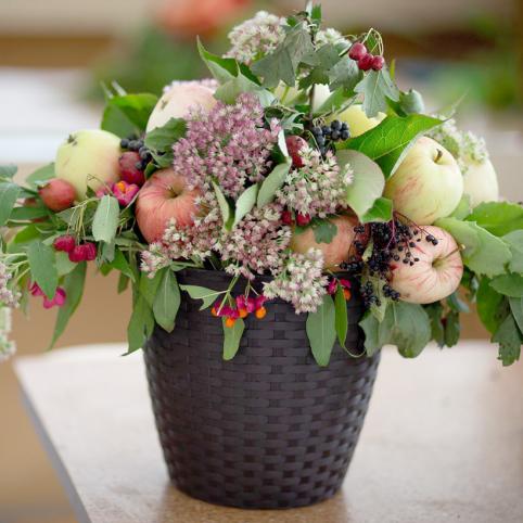 Ruduo floristikai dėkingas ir tuo, kad yra vaisių ir daržovių, o iš jų galima sukurti dar įdomesnių kompozicijų.
