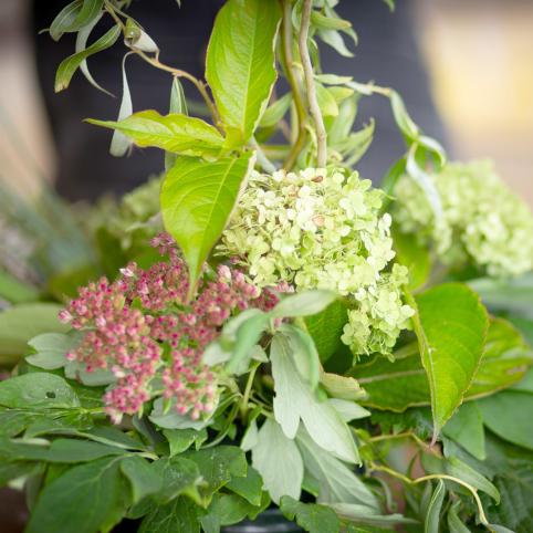 Yra visa grupė augalų – ir pirktinių gėlių, ir iš sodo, kuriuos galima tarpusavyje derinti, keisti. Štai leukadendrą atitinka pūkenio šakos, jos gana gražiai atrodo. Arba paraudęs penkialapis vynvytis. Be to, jis turi puošnias tamsias uogas. Spalvos nepraranda eleboro šakos. Galima panaudoti visų labai mėgstamas įvairiaspalves hortenzijas. Dar šilokai, kurie pražysta rudenį.